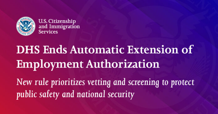 미국 국토안보부(DHS)가 일부 외국인 근로자를 대상으로 실시되고 있던 고용허가증(EAD: Employment Authorization Document)의 자동 연장 제도를 종료했습니다. Boundless+1
