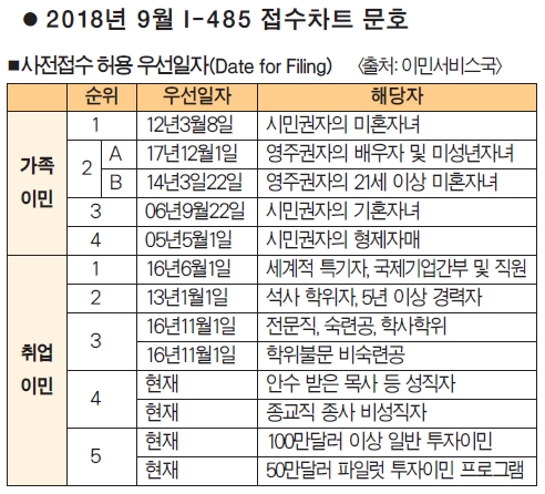 이민서비스국(USCIS)이 발표한 ‘9월 I-485 접수차트’에서 I-485 접수가 가능한 접수 우선일자가 대폭 후퇴했습니다.