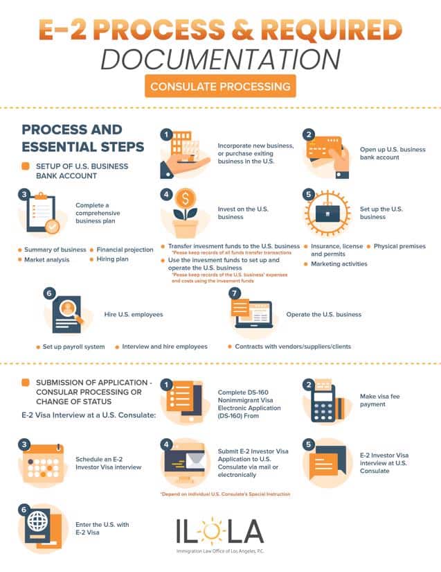 특히 E-2 비자 케이스에서 사업계획서(business plan), 재무제표(financial statements), 고용자료(employment records) 등을 미리 준비하는 것이 권장됩니다. Colombo & Hurd, PL