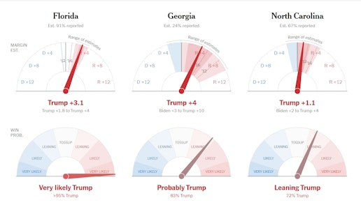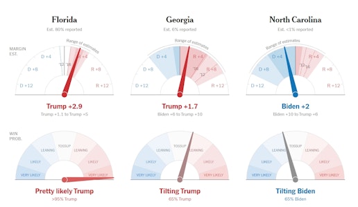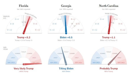뉴욕타임스 : 플로리다, 조지아, 노스캐롤라이나 트럼프 승리 예측